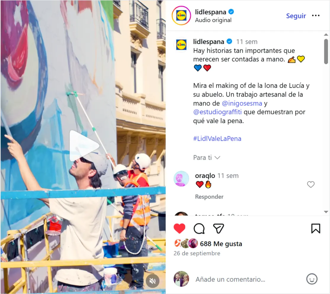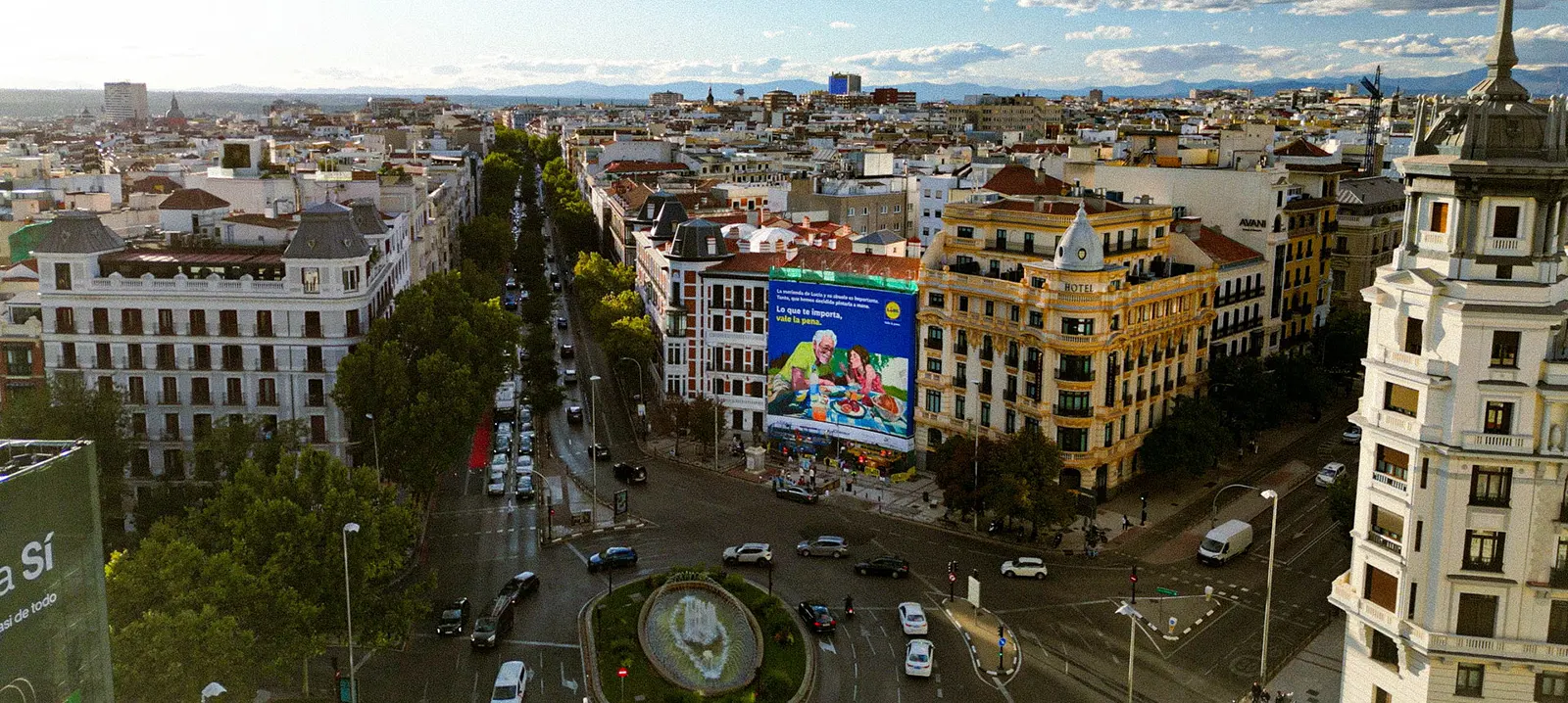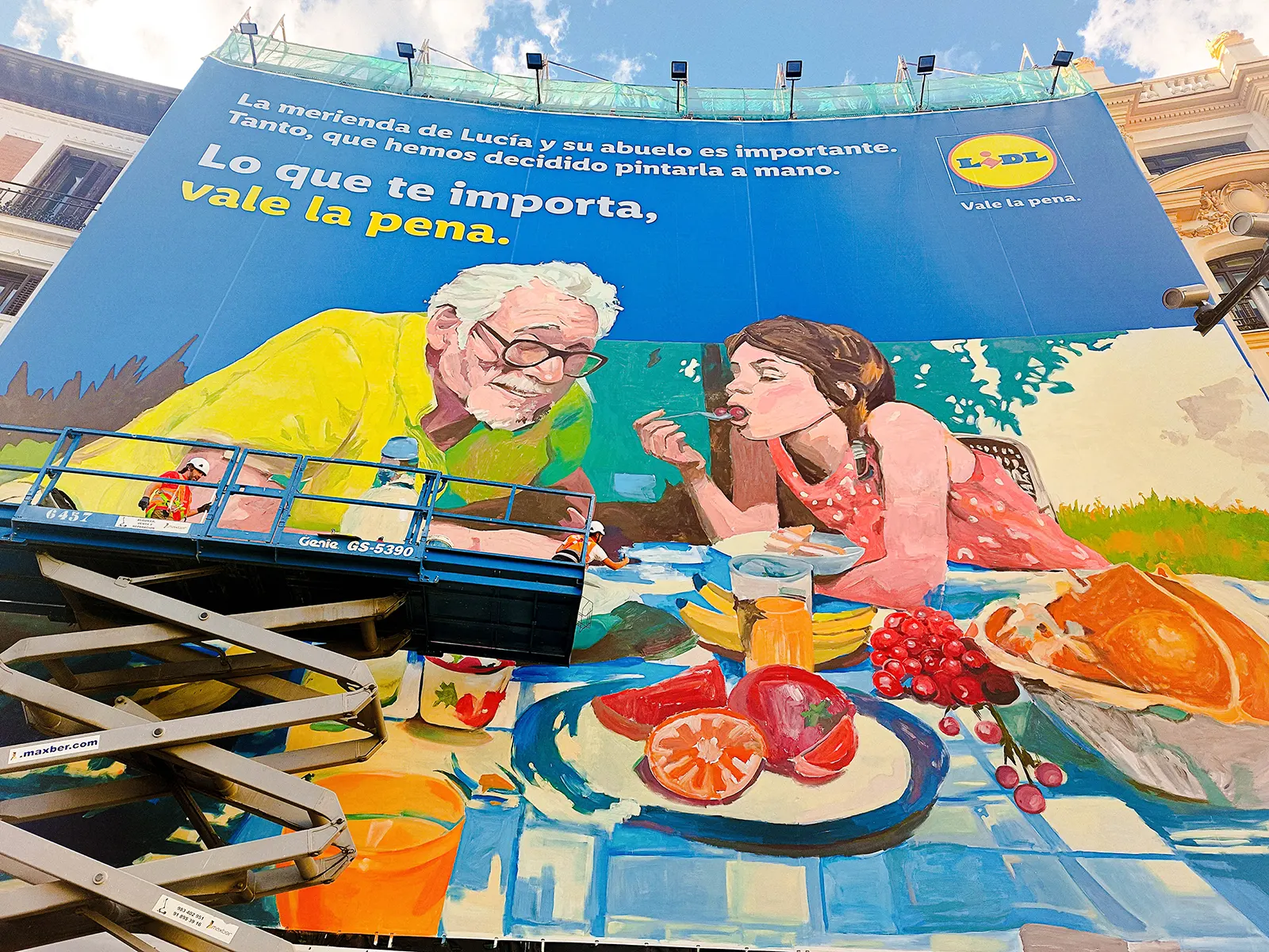En este proyecto colaboramos con Lidl España para transformar su nueva campaña en una lona publicitaria en Madrid instalada en pleno centro, en la plaza de Alonso Martínez. El diseño original, creado por el artista Iñigo Sesma, fue producido íntegramente por nuestro equipo de Estudio Graffiti, aportando nuestra experiencia en publicidad urbana, intervenciones a gran formato y producción mural profesional para marcas.